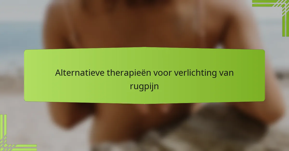 Wat zijn de meest effectieve alternatieve therapieën voor verlichting van rugpijn?