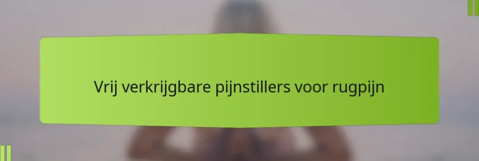 Vrij verkrijgbare (OTC) pijnstillers voor rugpijn omvatten doorgaans niet-steroïde ontstekingsremmers (NSAID’s) zoals ibuprofen en naproxen. Paracetamol is een andere veelvoorkomende keuze die kan helpen om pijn te verminderen zonder ontsteking aan te pakken. Deze medicijnen zijn over het algemeen effectief voor milde tot gematigde ongemakken en zijn zonder recept verkrijgbaar.
